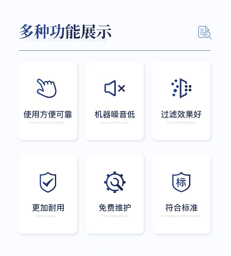 | 1.使用方便、可靠。 | 2.过滤后奶液可继续用于生产,降低成本。 | 3.噪音低,过滤效果好。 | 4.免维护设计,避免皮带维护麻烦。 | 5.耗材成本低。 | 6.改进电机,更耐用。 | 7.配套齐全,使用便捷。 |