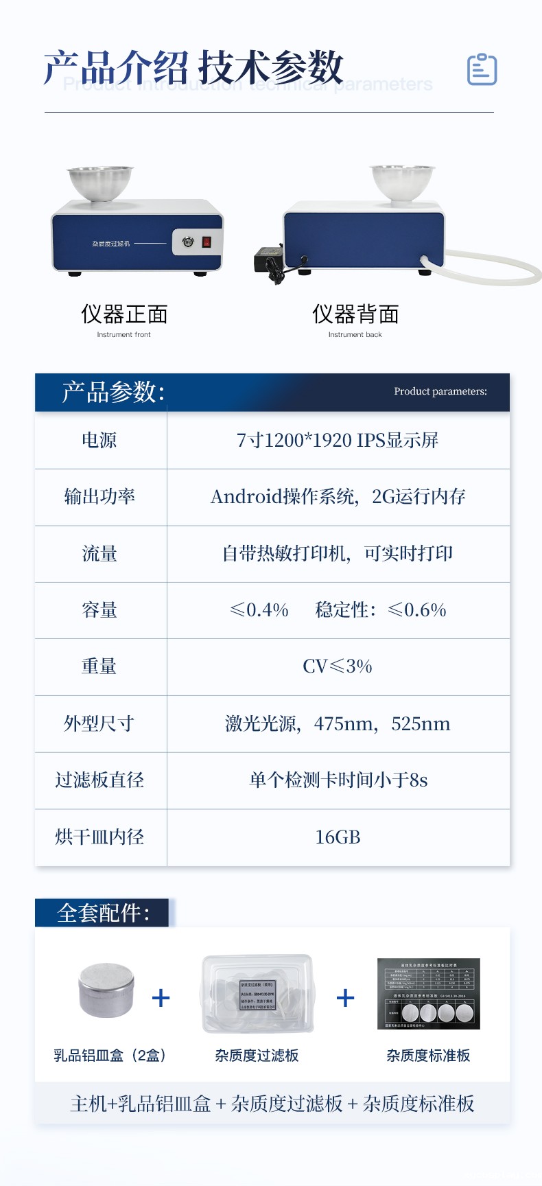 | 用途:用于乳及乳制品中杂质度的测定。 | 标准依据:符合国家标准 GB/T5413.1—5413.32,特别是 GB5413.30-2016 的要求。 |