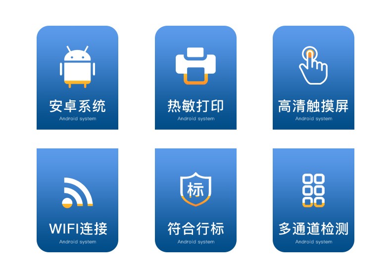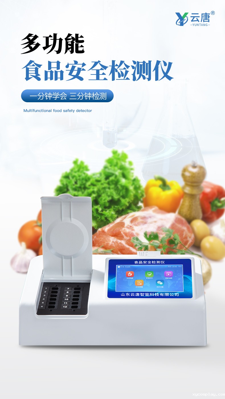 | 安卓智能操作系统,采用更加**和人性化操作,仪器具有网线连接、wifi联网上传、GPRS无线远传功能,快速上传数据。 | 智能化程度高,仪器具有自检功能:具有开机自检和调零功能,具有自动检测重复性功能。 | 检测通道:≥12个检测通道,可以同时测试多个样品,每个样品由程序控制分别独立工作,不会互相干扰。 | 显示方式:≥8英寸液晶触摸屏显示,人性化中文操作界面,读数直观、简单。 | 配备新一代嵌入式热敏打印机,可选择手动打印或者自动打印,检测完成可自动打印检测报告和二维码。 | 光源采用进口超高亮发光二极管,高精度、稳定性强、光源可控、可以关掉不使用的光源,功耗更低。 | 采用USB2.0接口设计,方便数据的存贮和移动,并可随时与计算机直接相连,并且可用计算机控制仪器。实现数据查询、浏览、分析、统计、打印等。 | 仪器带有监管平台。数据可局域网和互联网数据上传,检测结果直接传至食品安全监管平台。进行区域食品安全监管及大数据分析处理,检测区域食品安全长短期动态,达到食品安全问题预估、预警 | 一体化便携式快检设备,满足现场及流动检测使用需求,能够在同一软件下实现所有检测项目的检测,并可通过同一窗口直观显示检测结果。 | 仪器具有多品类多种类样品菜单库,可灵活选择检测样品,不同的检测通道可同时检测不同的样品项目。也可在仪器上直接编辑录入样品名称、检测指标、送检单位等信息并保存进样品数据库。 | 样品处理简单省力,整体操作快速、安全、便捷。 | 仪器具有自身保护功能,可设置用户名及密码,防止非工作人员操作等。 | 高灵敏度,高检测精度,高重复性精度,扫描式高精度光学传感器。 | 内置强大的数据库,可在仪器上直接选择样品名称、检测指标、送检单位等信息,也可在仪器上直接编辑录入样品名称、检测指标、送检单位等信息并保存进样品数据库。 | 仪器具有重新校准、锁定、恢复出厂设置功能。 | 支持U盘存储。 结果判定线可修改,对照值标定值可保存,断电不丢失数据。 |