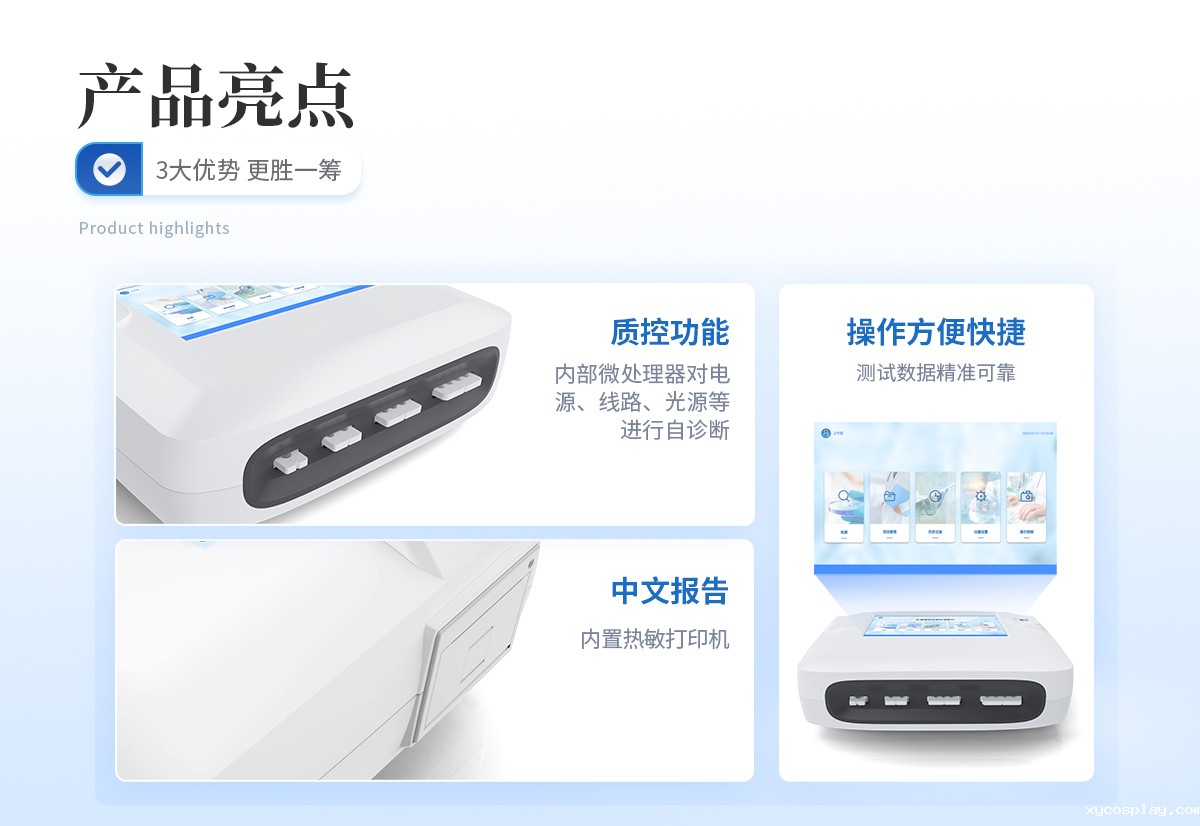 | 1、 Android触控系统结合大尺寸高清屏幕,界面友好,操作简单流畅,无需外接设备; | 2、 ★单卡+多联卡设计方案,显著提升检测效率,满足批量样本快速处理需求; | 3、 可以500万条检测结果,支持按日期灵活查询、预览、删除结果,并生成多样化专业报告。 | 4、 内置热敏打印机,检测完成即可现场打印标准报告,提升工作效率。 | 5、 关键部件实时自诊断功能,保障仪器长期稳定运行。 | 6、 高速有线/无线网络及蓝牙,构建完善的数据监控平台,实现数据实时上传、远程查询、统计分析和监管协同。 | 7、 丰富的接口设计,轻松连接电脑、U盘、网络及上位机系统,支持U盘导出。 | 8、 孵育模块为特定试纸条反应提供**温度环境。 | 9、 流线型结构,紧凑轻便,兼顾实验室耐用性与检测需求。 | 10、 二维码扫描录入样本信息,避免人工错误。 | 11、 插卡判断:检测卡未插入检测通道不能检测 | 12、 内置质控功能,可设备送检、设备自检、试剂卡自检 | 13、 检测方式:孵育检测、即时检测(对检测数据复检核实) | 14、 检测曲线:可以对试剂卡的检测核验,防止误判 | 15、 检测结果:报告出检测项目、被测物质的浓度、检测单位、被检查单位、检验员、检测时间、检测限等信息可在触摸屏上显示,可通过仪器内置打印机输出 | 16、 项目管理:支持检测项目拓展功能 | 17、 界面设置:可修改标题和页尾信息,灵活展示仪器信息 |
