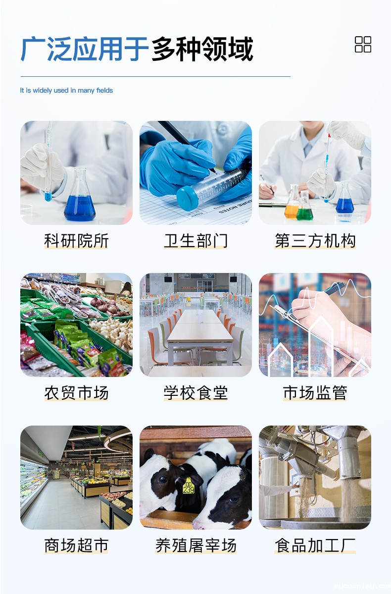 该多功能必威体育网官方为集成化食品安全快速检测分析设备,广泛应用于食药监局、卫生部门、高教院校、科研院所、农业部门、养殖场、屠宰场、食品肉产品深加工企业、检验检疫部门等单位使用。