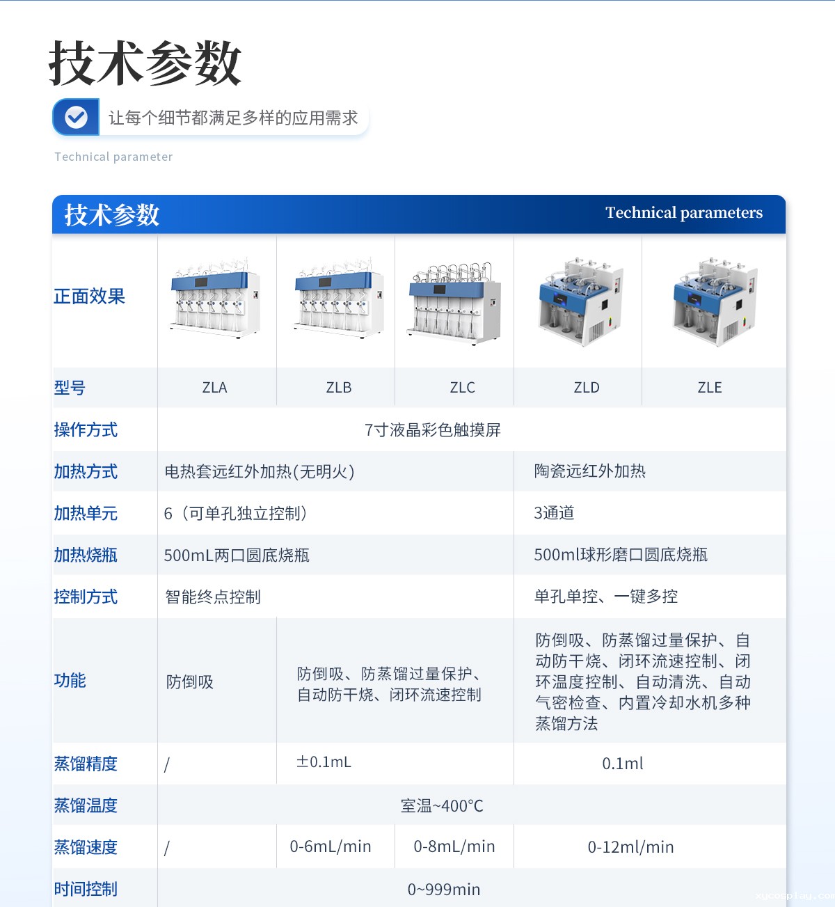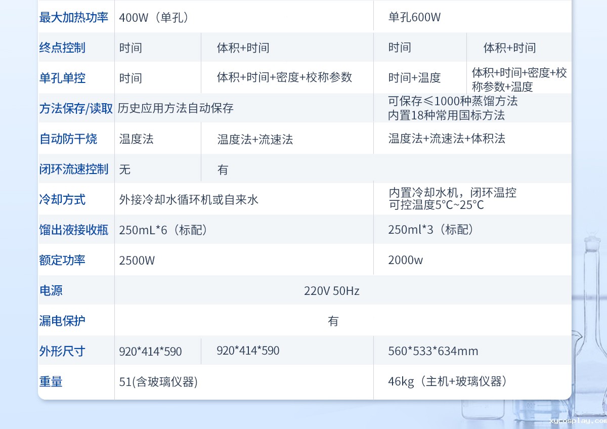 | 方法保存/读取 | 历史应用方法自动保存,自动加载 | 可保存≤1000种蒸馏方法,内置18种常用国标方法 | |
